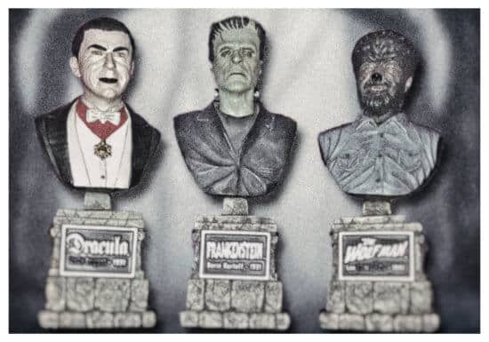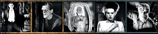 Horror giants like Dracula, Frankenstein’s monster, the Wolf Man, the Mummy, Phantom of the Opera, Invisible Man, and Creature from the Black Lagoon are easily recognized as the foundation of fiendishly frightening films. From 1931 to 1956, Universal Studios Classic Monsters set the standard for macabre motion pictures.