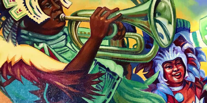 One such detail is a hand-painted mural located at the heart of Centertown Market. Walt Disney Imagineers researched various festivals and celebrations throughout the Caribbean to draw inspiration for the vibrant new artwork, which depicts a street parade with music, dance, and elaborate costumes made from hand-cut, fringed crepe paper and feathers.