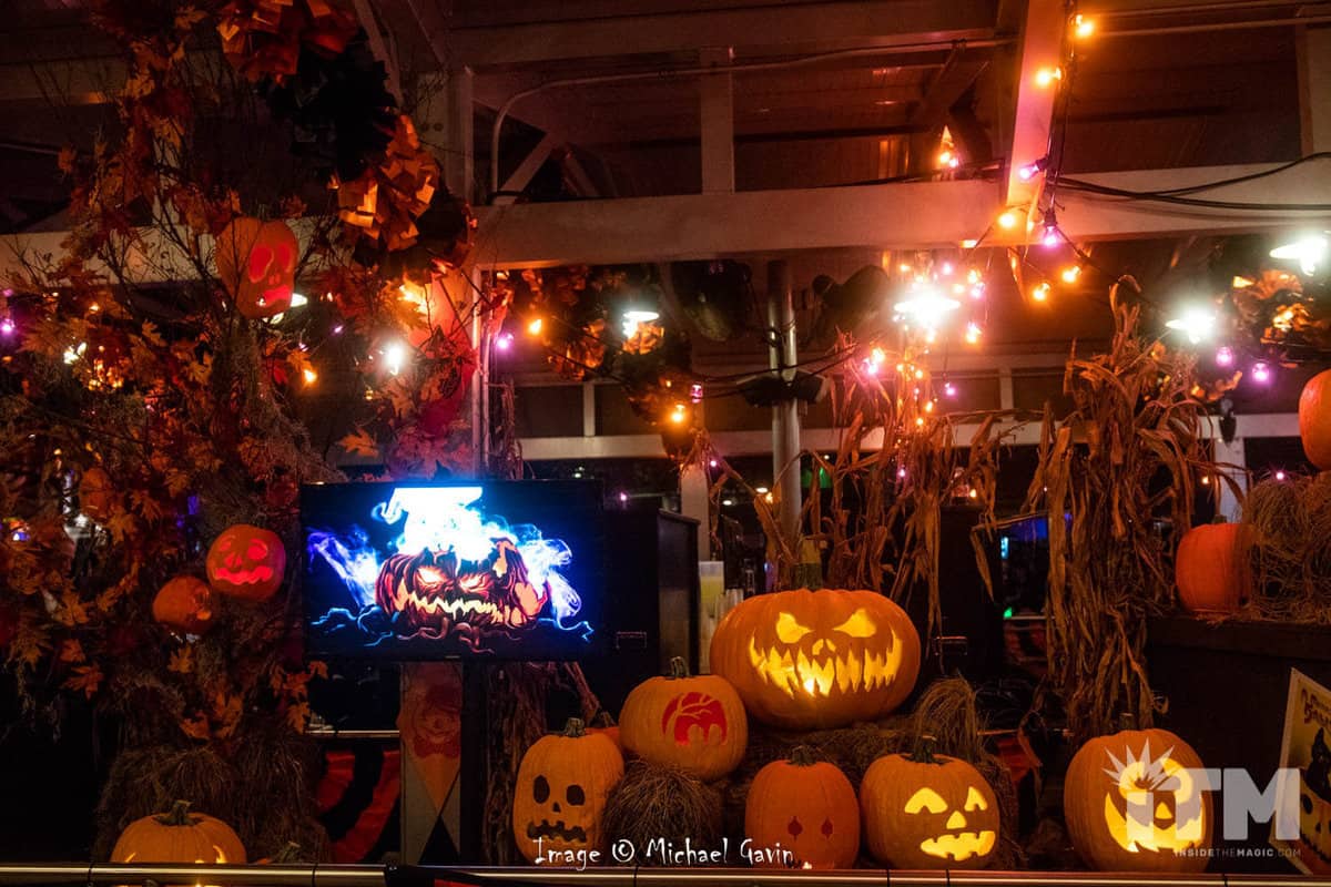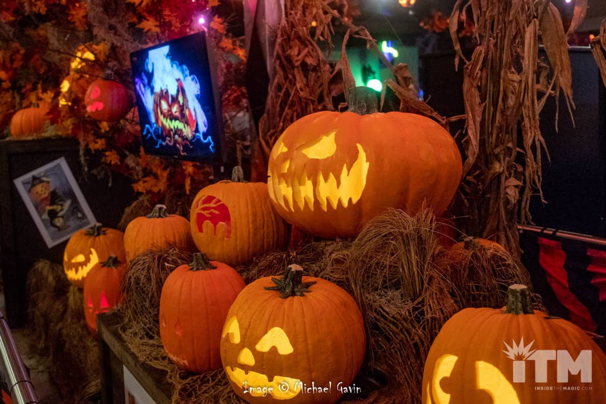 Boos and spirits beckon but traditional trimmings for fall found in this HHN bar’s queue summon a closer look. Grim grinning jack-o-lanterns, nostalgic images, and fall foliage add ambiance to this wicked watering hole. Calming warm, welcoming colors and, perhaps, a potion to calm the nerves can be found within the extended queue for TRANSFORMERS: The Ride-3D.