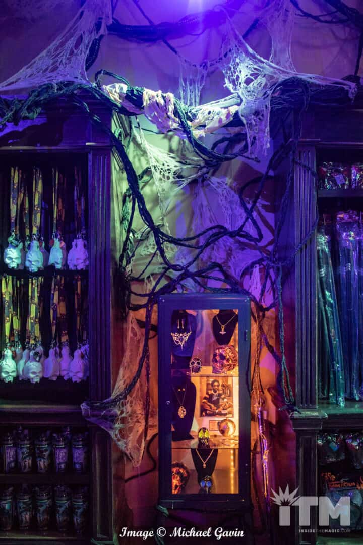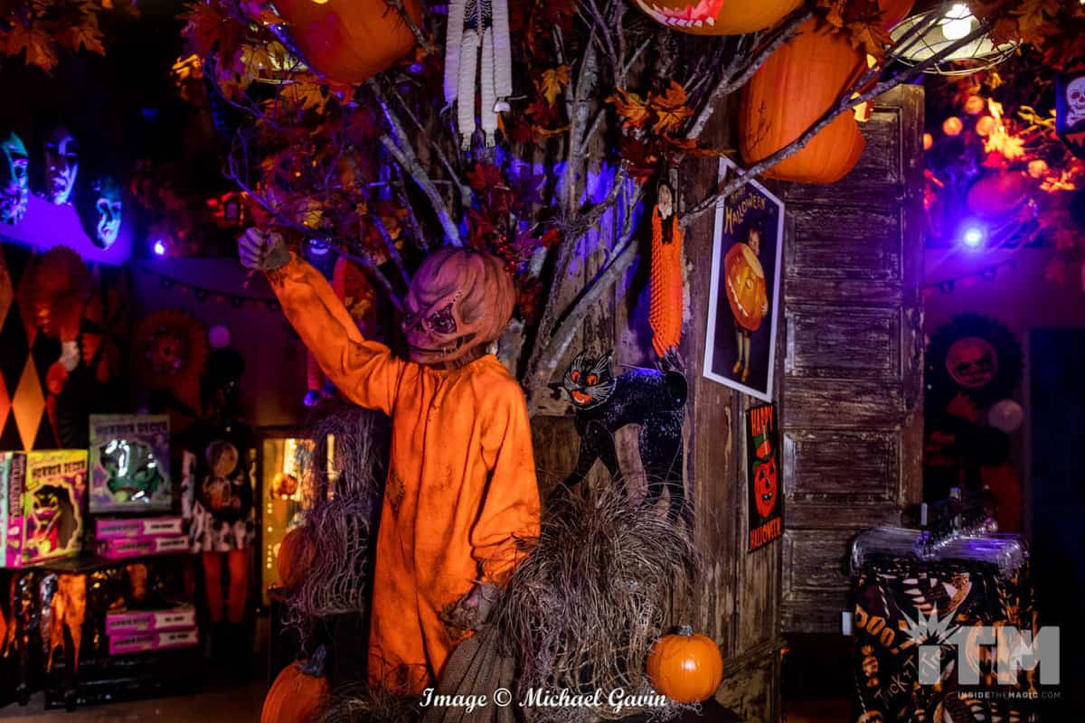 Carved into two distinctly different sections, this immersive store is an attraction to experience. Twisted towering skeletons with gruesome grinning gourds for heads guard the entrance doors of I. Stein & Co. (next door to Macey’s and Revenge of the Mummy).