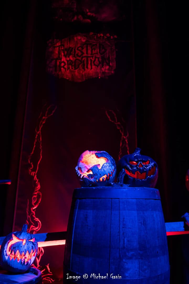 Monsters and pumpkins aside, Twisted Tradition is an amazing and beautiful experience. From the haunted, graveyard surrounded ruined church standing guard at the zone’s entrance to the jack-o-lantern clad purple lit trees, this is pure Halloween fiendish fun at its finest. Frightful fiends and chilling ambiance make this macabre manifestation a must see!