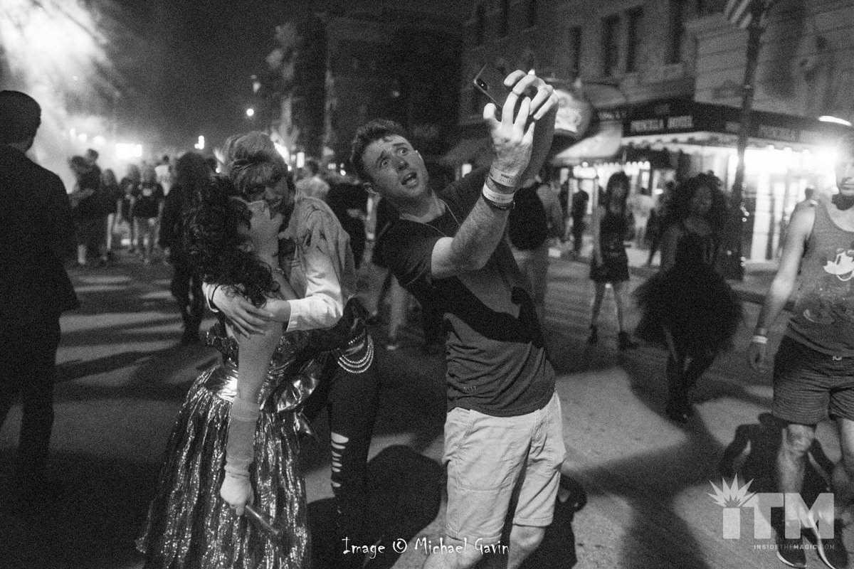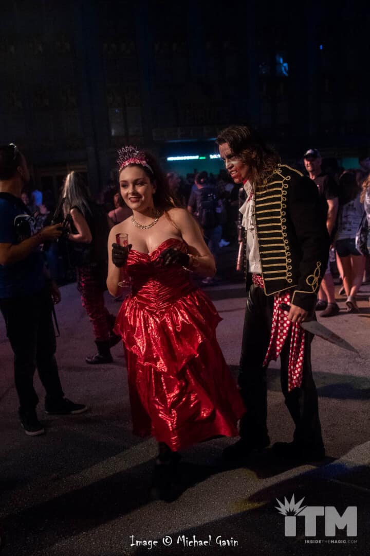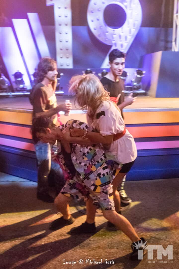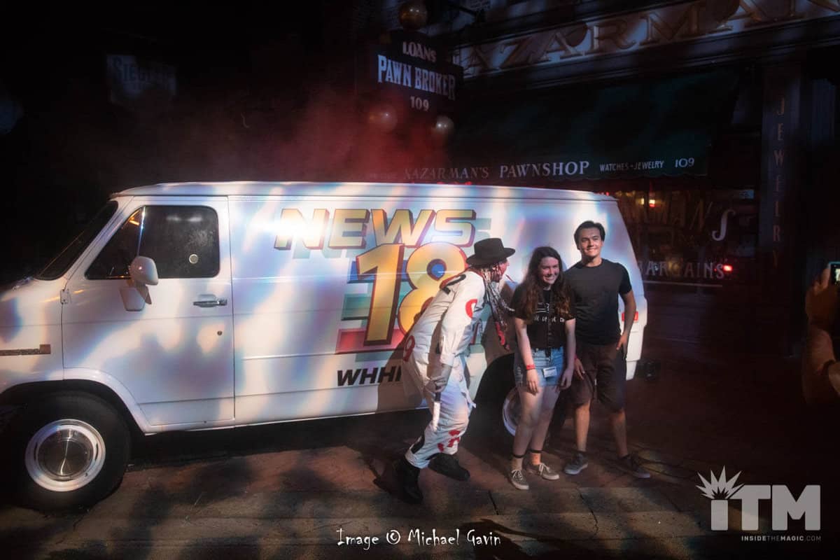 Partiers become prey as “innocent” guests appear to be randomly ravaged during the course of the evening. Emcee encouraged dance spotlights (featuring volunteers from the HHN audience), choreographed musical numbers and countdown to midnight are all “documented” by two unfortunate reporters from the local news.