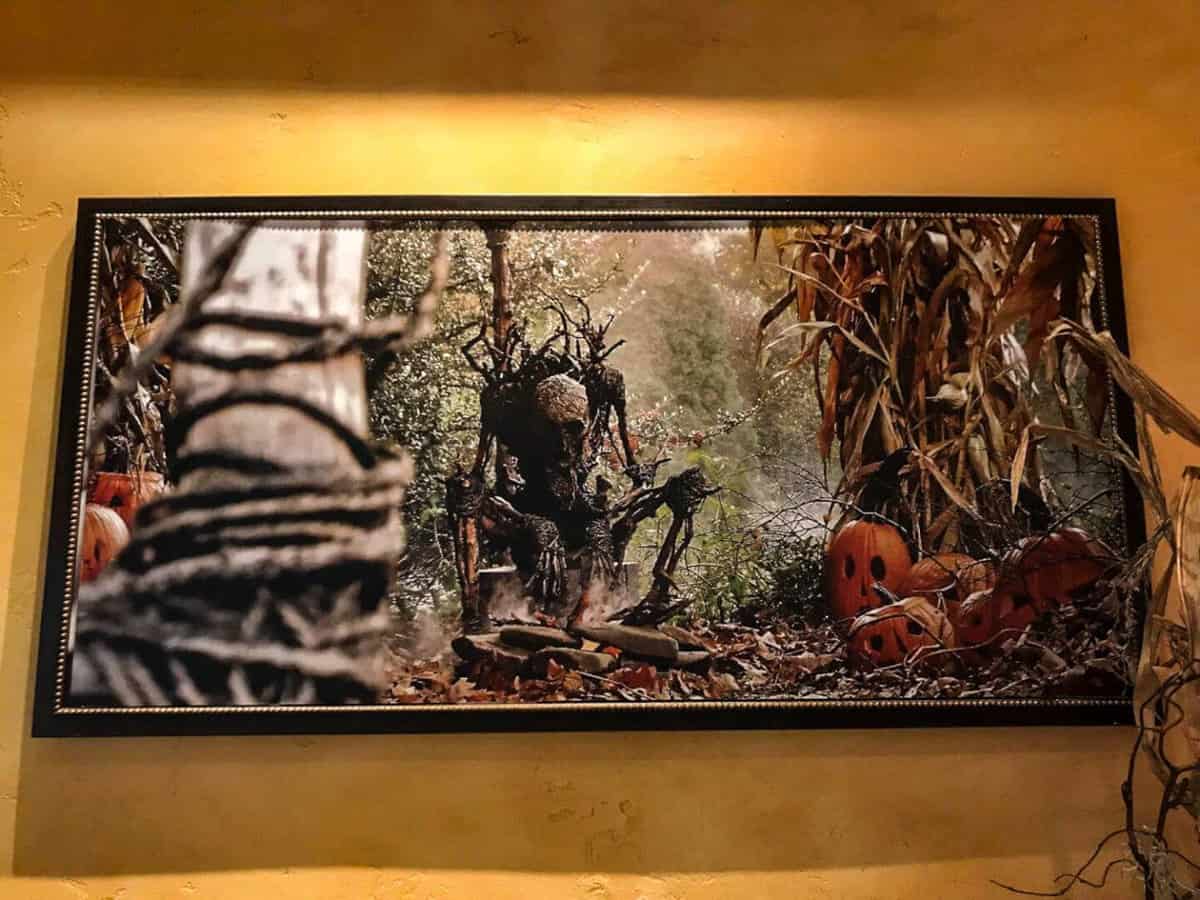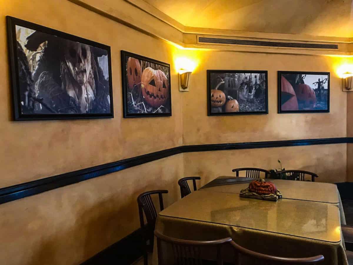 Readers of ITM and fans of dark décor master Pumpkinrot should recognize the wicked wall art hauntingly hanging within Café La Bamba at Universal Studios Florida. Additional ambiance is added with ghoulish gourds and sinister scarecrows. Guarding the buffet, Gill-man himself, the Creature from the Black Lagoon, stands tall with webbed hand outstretched, as if greeting newly arriving victims (or, maybe, seeking a small snack?).
