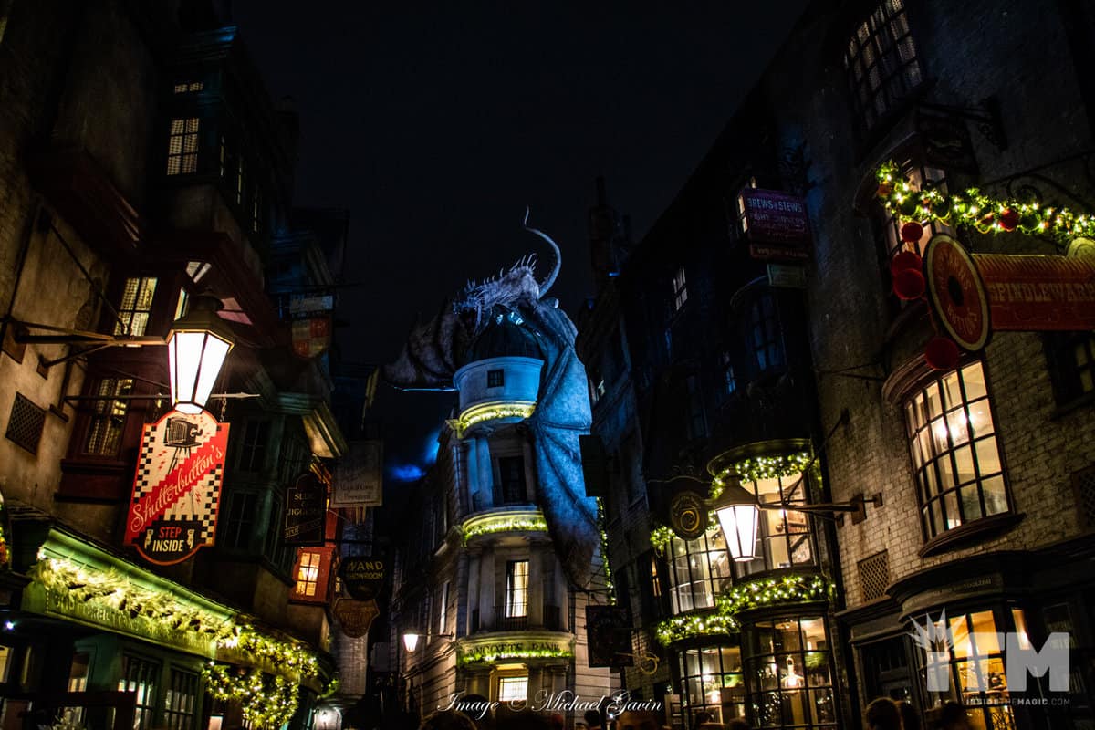 With the shorter days of Winter, Wizarding World’s holiday adornments mesmerized much more magically after dark. Accompanied by her Banshees, Celestina Warbeck wooed with wonderful, merry, magical music. Muggles and Wizards enjoyed the Yuletide ambiance together as they scurried about the shops. We, of course, joined in this spellbinding practice, perusing Potter merchandise while enjoying the sights.
