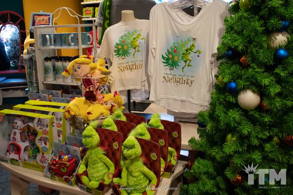 Though we again learned that Christmas doesn’t come from a store, seasonal shopping at Seuss stores ensued. Along with discovering feisty fun t-shirt design (“Naughty Thing”) at the U-Design kiosk – which decided to put off purchasing until we went to Universal Orlando (as the printer for all shirts is in the MIB store), a new “talking” Grinch ornament was added to the holiday collection.