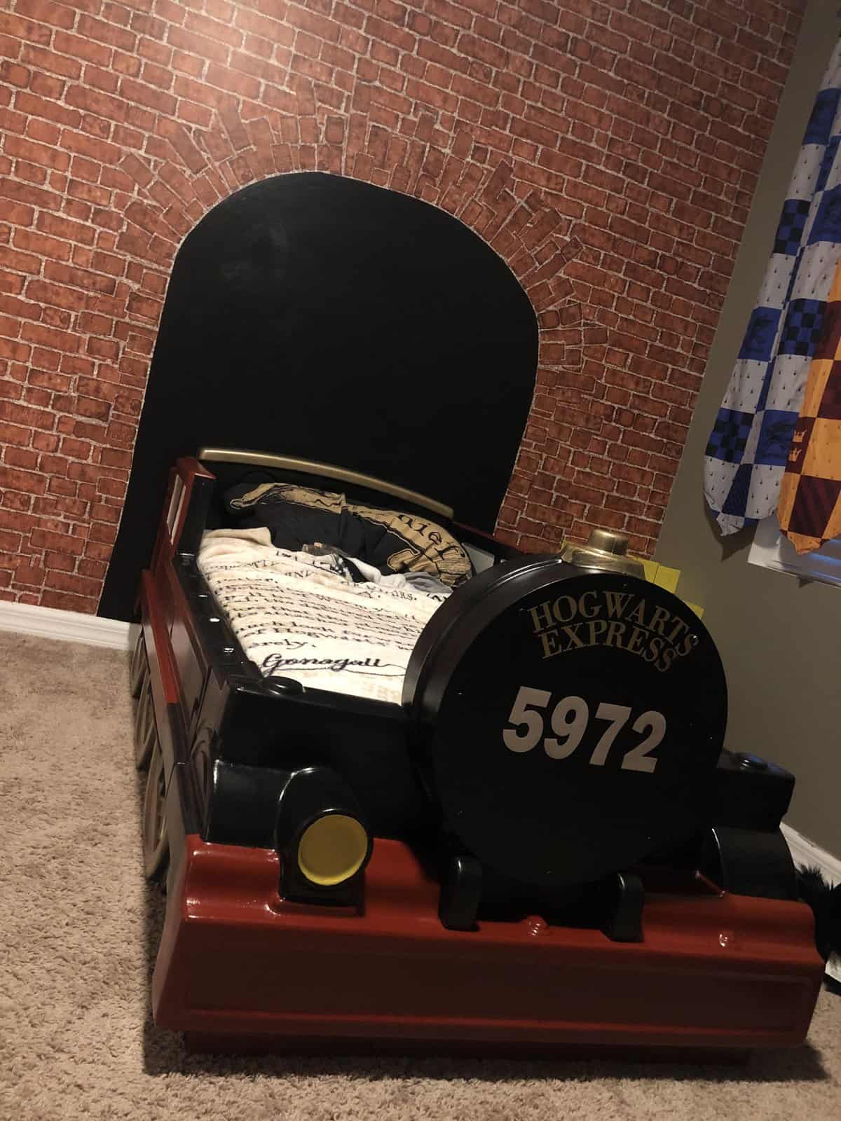 (for those wishing to create their own Hogwarts Express bed: Thomas toddler bed)