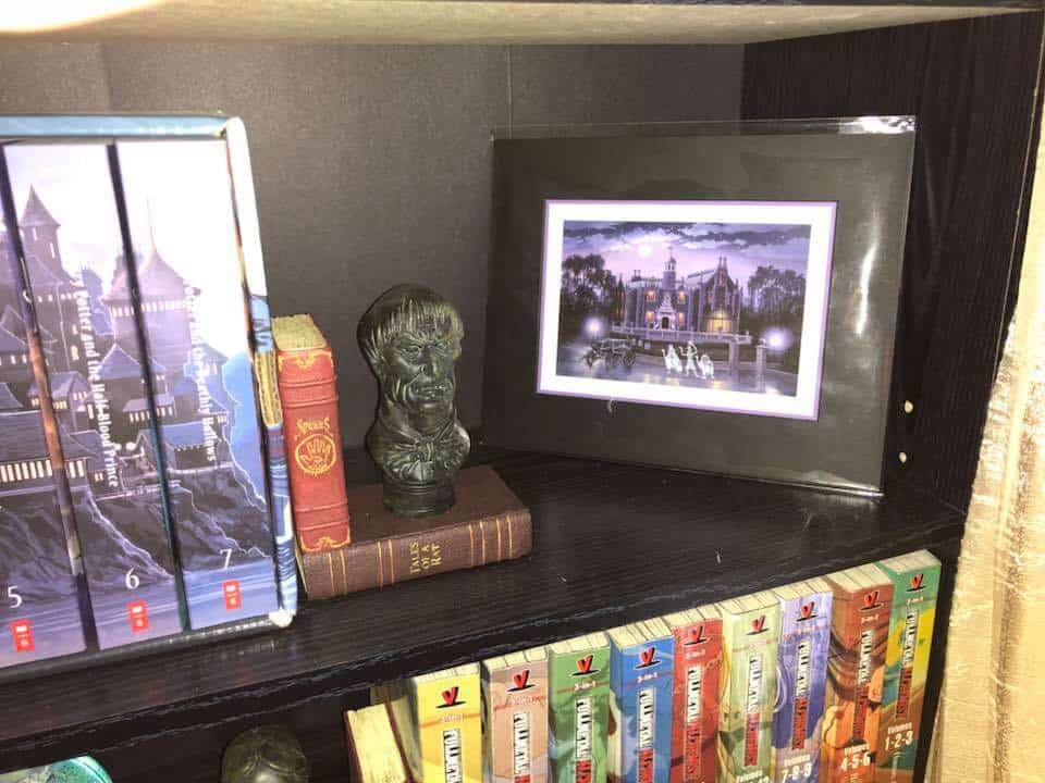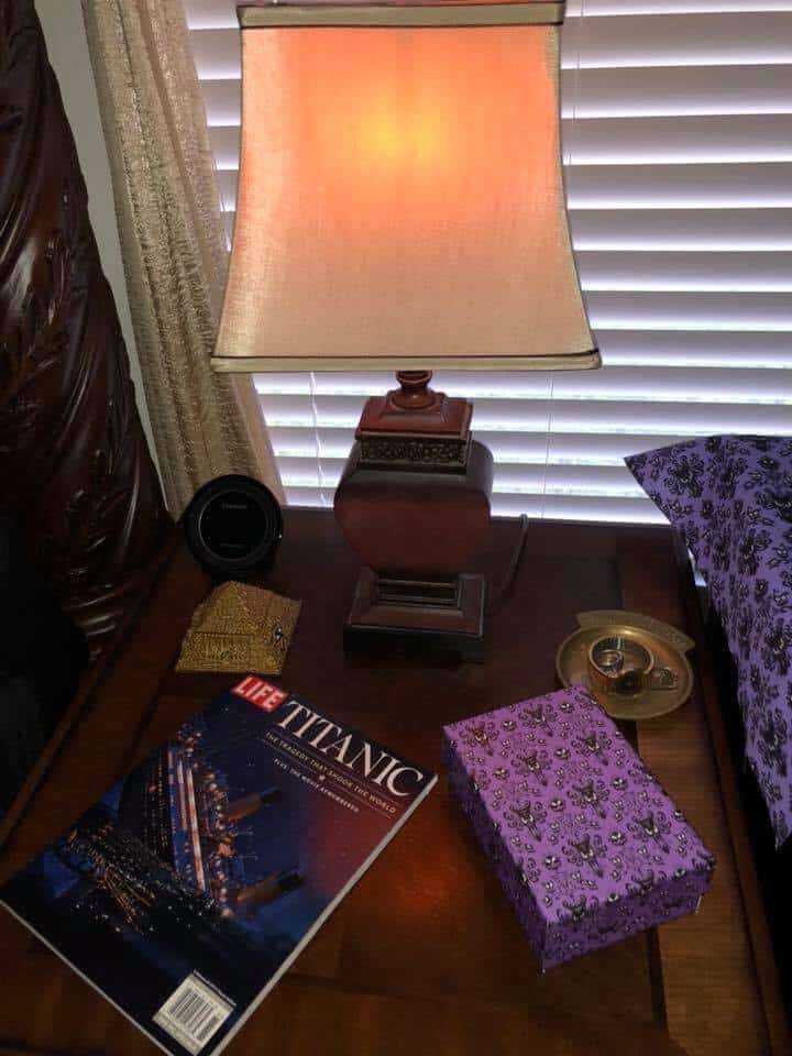 With a balance of hand-crafted creations and official Disney delivered Haunted Mansion collectibles, Rita’s room took on its ghostly form.