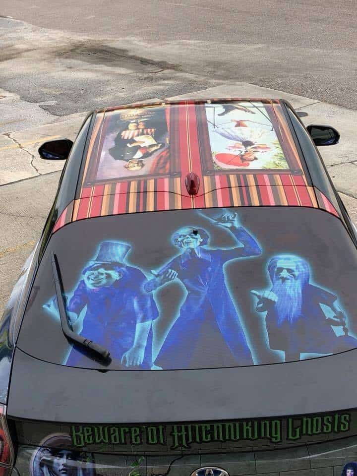 Disney fan Rita De La Torre and her husband took At Home Imagineering to the next level. Not only did they transform a room in their house into a Haunted Mansion bedroom, but their car also carries the same haunting theme with them wherever they drive.