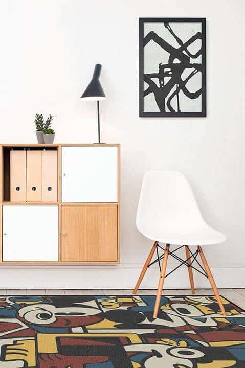 Want a more art-deco look? Ruggable’s got you! The Mickey Polka Dots rug is very retro and fun. Available in natural, multicolor, and slate blue.