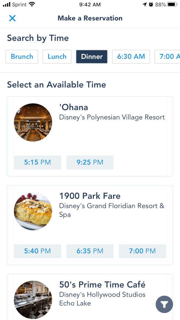 My Disney Experience Dining Reservation Availability for June