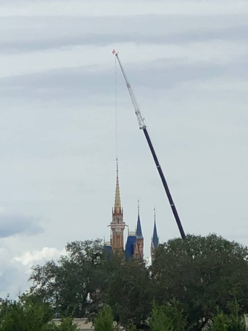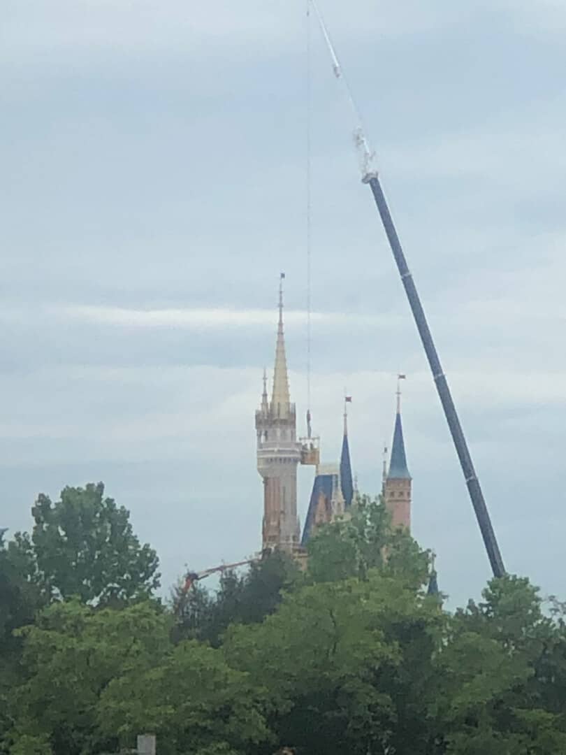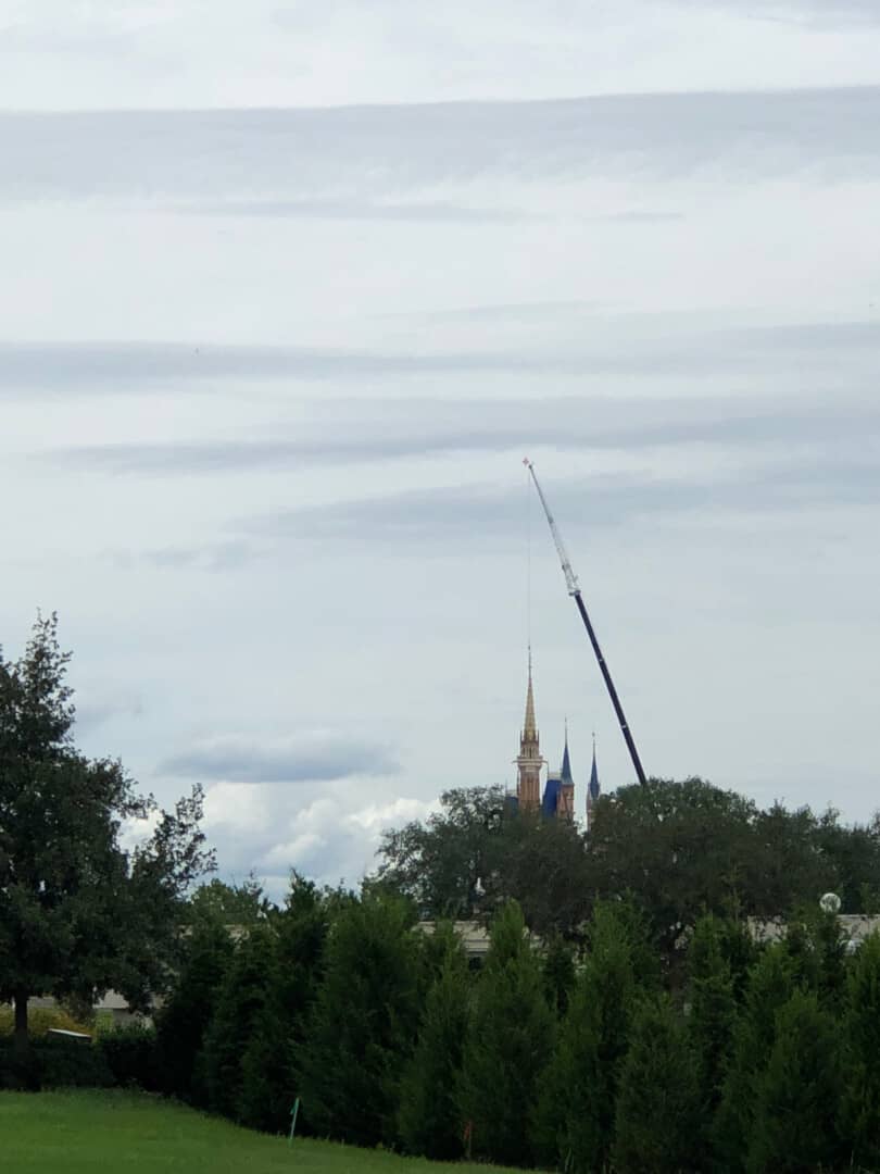 In a recent drive by the back roads of Disney World, we were able to capture some workers diligently beautifying the castle.
