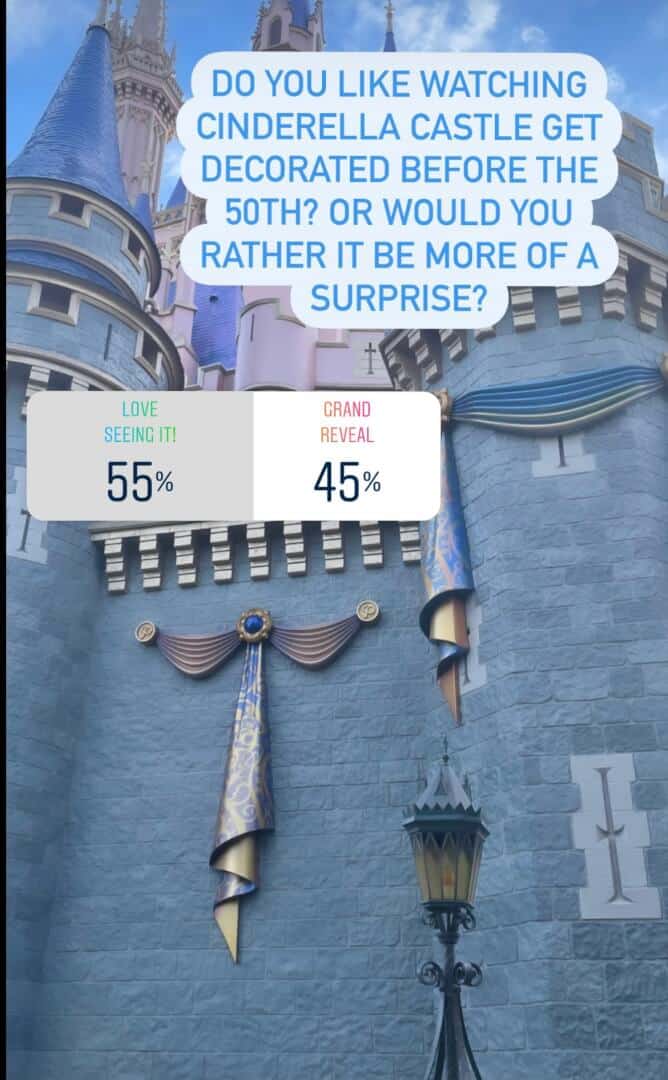 The interesting thing about the slow application of these decorations is that we have seen Disney deck out not only Cinderella Castle, but all of Magic Kingdom overnight for Halloween and Christmas. If they are able to do all of that in one night, many would assume that the castle’s decoration for the 50th should not take months.