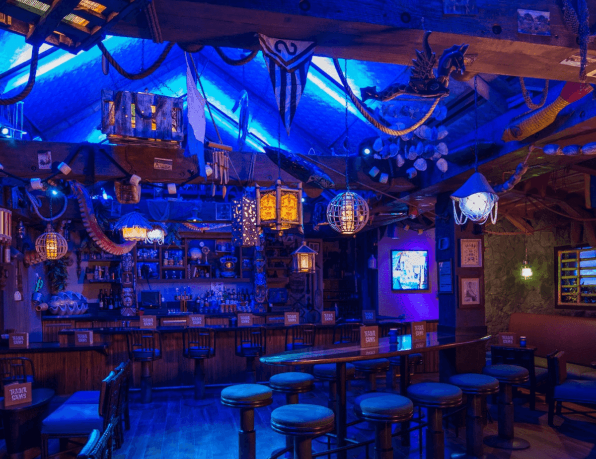 Watch in wonder as the walls start to shake with volcanic eruptions all around you as you sip exotic elixirs of untold potency. You may not be able to shake the feeling that the tiki gods are watching you…