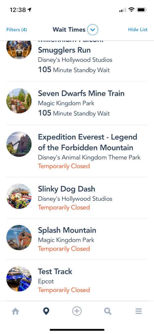 Temporary closures tend to lift within the same day, as we can see with Space Mountain’s previous closure above. So if you ever notice that an attraction you want to ride is temporarily closed, keep an eye out on your My Disney Experience app to be among the first to know when it is once again operational.