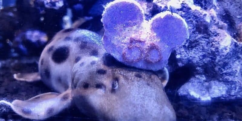 Dr. Mark Penning, Vice President: Animals, Science and Environment, shared some adorable pictures of the marine life at Disney getting in on the anniversary fun. According to Dr. Penning, aquarists — those who maintain the marine life habitats and interact with the animals — designed and printed water-safe, 3D hats and put them in the tanks of some sea urchins. Urchins love to pick things up to cover themselves, and the end result is absolutely adorable and teeming with Disney magic.