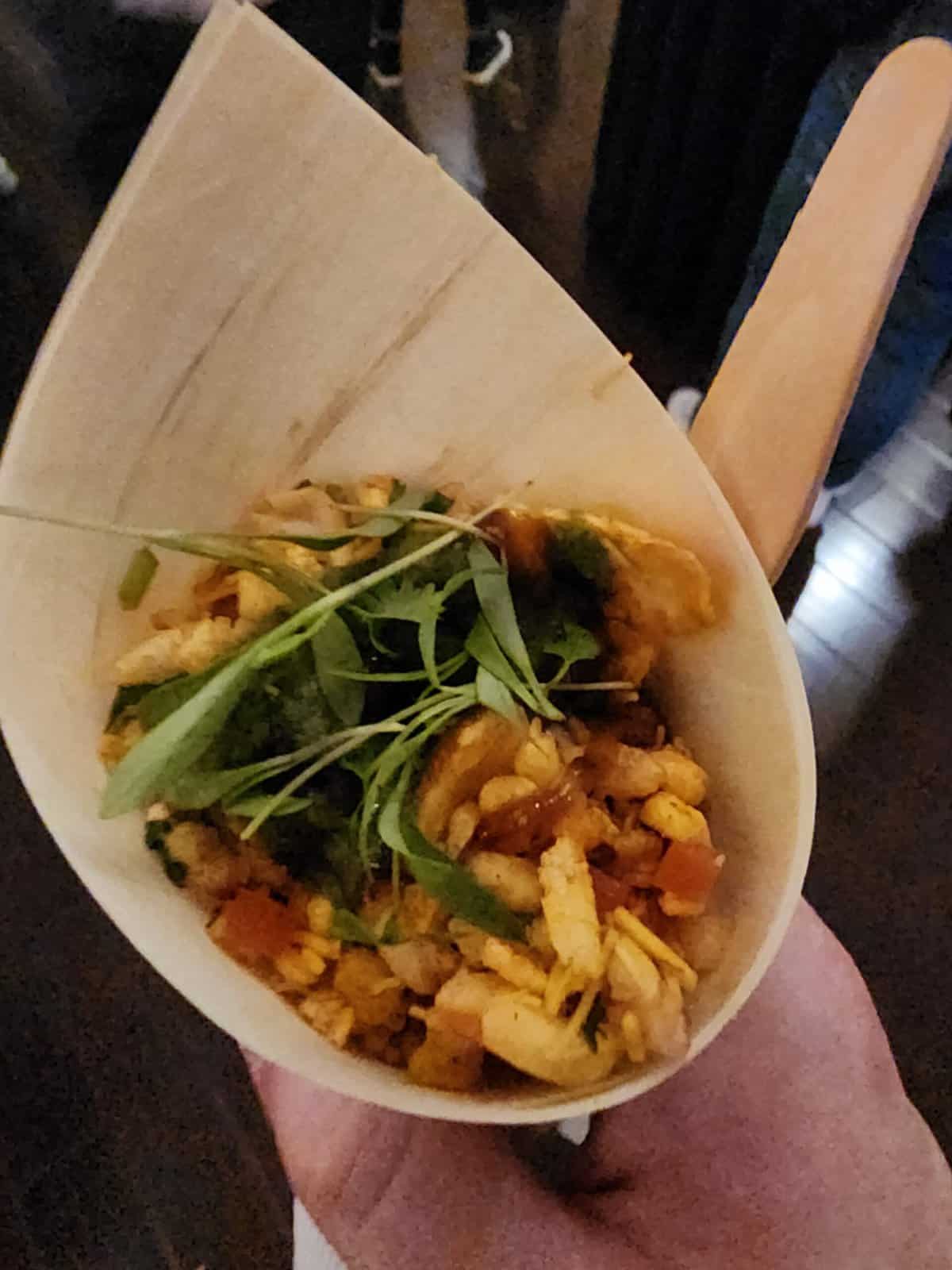 This was a promotion for Disney’s upcoming Haunted Mansion movie, directed by Justin Simien and starring LaKeith Stanfield and Tiffany Haddish. The party featured an advanced film screening and an after-party at a spooky “mansion.” The party had live music, themed cocktails, and ghostly surprises. The drinks featured were The Grim Grinning Ghost (Vodka, Smashed Cucumber, Pressed Lime, Agave Nectar, marbled Basil topped w/ Citrus Aromatic Bubble) and Happy Haunts (Bourbon, Activated Charcoal, Vanilla, Oleo Saccharum, Angostura Bitters, Orange Peel, Offered Smoked). To get to the party, you could ride in one of the Doom Buggy pedicabs decorated like the ride vehicles from the Haunted Mansion attraction. After beginning your journey, a hitchhiking ghost could hop on a ride with you!