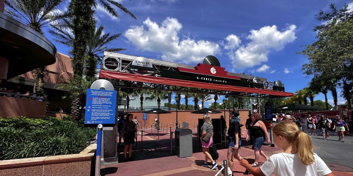 Guests outside of Disney's Hollywood Studios entrance at Disney World park.