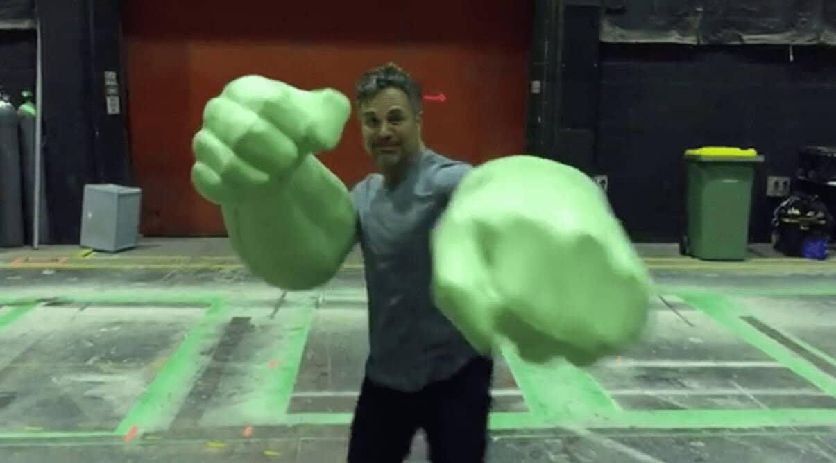 Mark Ruffalo smashes around with giant Hulk hands on Marvel’s “Thor: Ragnarok” set