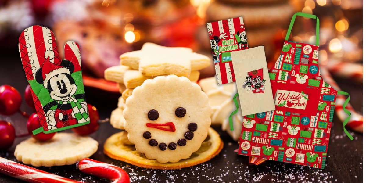 Disney Magic for Your Holiday Kitchen: Festive Mickey & Minnie Apron, Towels, and Oven Mitt!