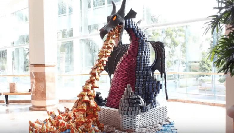 VIDEO – Disneyland Resort engineers build Maleficent Dragon out of cans for CANstruction Orange County