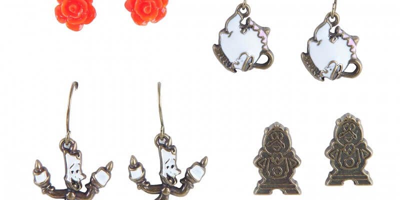 Earring set from Disney with Beauty and the Beast featuring Lumiere, Cogsworth and Mrs Potts available at Hot Topic.