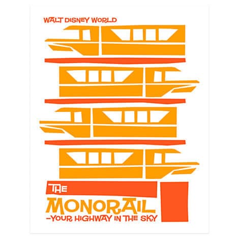 is back with another great Disney Attractions print this time featuring the Walt Disney World Monorail and this time you get to pick from both a t-shirt and some nice art. Both the t-shirts and art print are only available for a limited time so make sure to get your order in now!