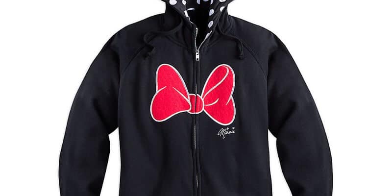 Cuddle up in our stylish zip hoodie featuring glittered Minnie lettering with her signature bow. The soft fleece interior and hood with Minnie ears makes this sweatshirt perfect for fun with family or a night on the town!