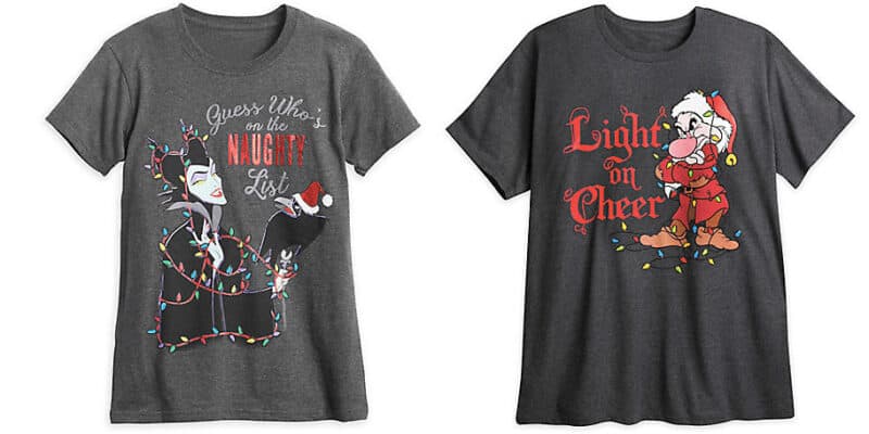 A festive new collection of Holiday Tees featuring mischievous characters Tinker Bell, Stitch, Maleficent, and Grumpy have arrived at Disney Store.