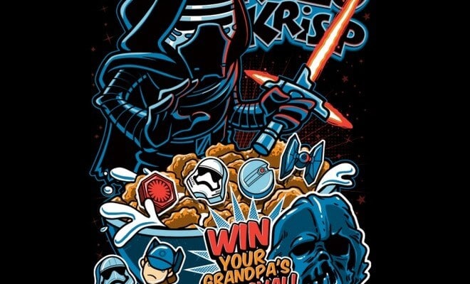 Uncategorized Star Wars The Force Awakens cereal tees from TeeFury Posted on February 2, 2016 by Corinne Andersson Leave a comment Current Price: $20 Purchase Kylo Krisp Tee BUY HERE Apple Jakku’s Tee BUY HERE Current Price: $20 Purchase
